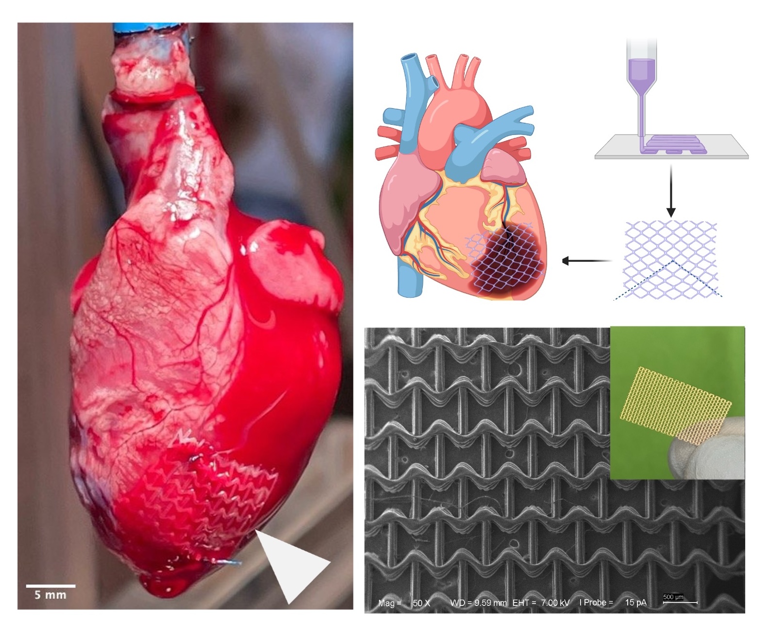 Leveraging state-of-the-art additive manufacturing and 3D printing technologies, we engineer patches with precisely controlled architectures and viscoelastic properties that replicate the complex, non-linear, and anisotropic mechanical behavior of native cardiac tissue. Furthermore, biofunctionality is incorporated through the integration of functional moieties and therapeutic agents, enhancing biological interaction and supporting regenerative processes.