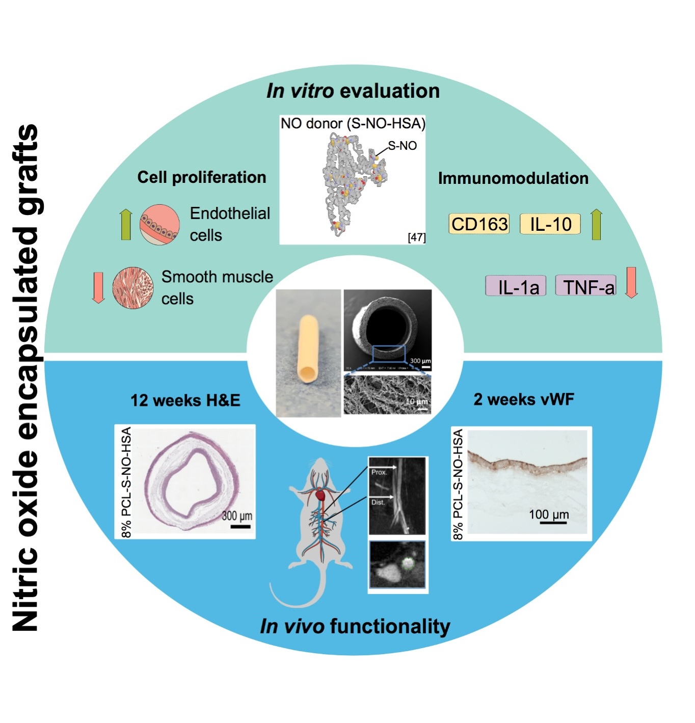 A central research focus is the evaluation of biocompatibility and immune responses, with the aim of promoting tissue regeneration and, in particular, the endothelialization of grafts. In addition, the degradation behavior and mechanical properties of the implants are analyzed and tailored to the intended clinical implantation site.